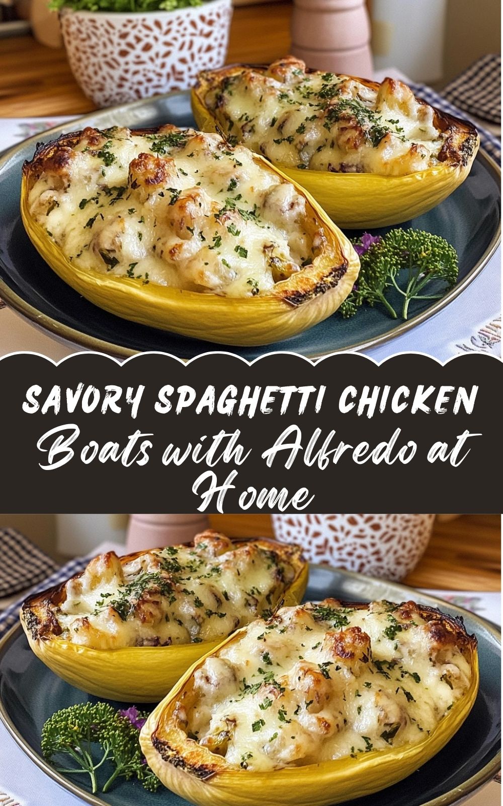 Savory Spaghetti Squash Boats With Chicken Alfredo At Home