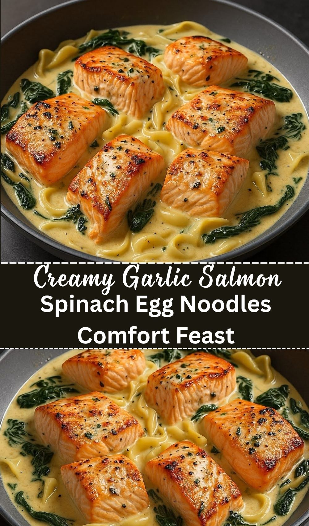 Creamy Garlic Salmon with Spinach Egg Noodles Comfort Feast
