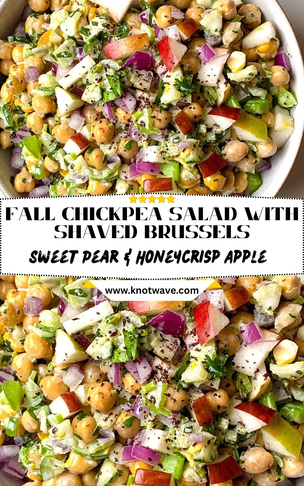 Fall Chickpea Salad with Shaved Brussels, Sweet Pear & Honeycrisp Apple – Quick & Wholesome Meal