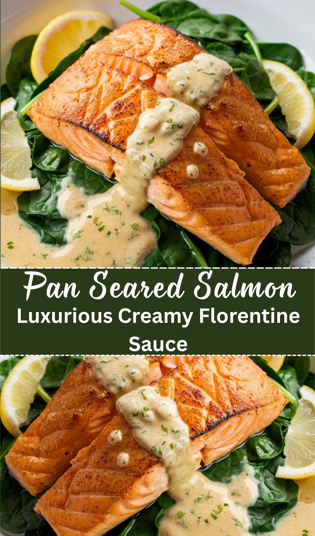 Golden, buttery salmon fillets bathed in a velvety Florentine sauce of cream, garlic, and spinach.